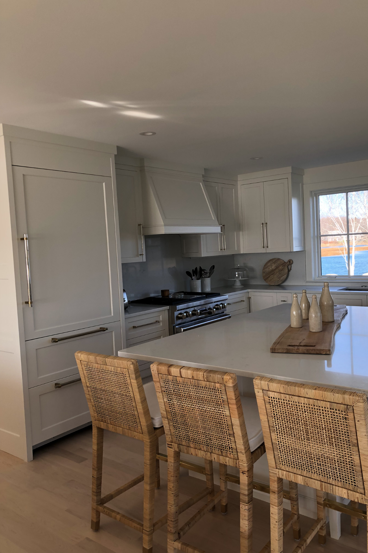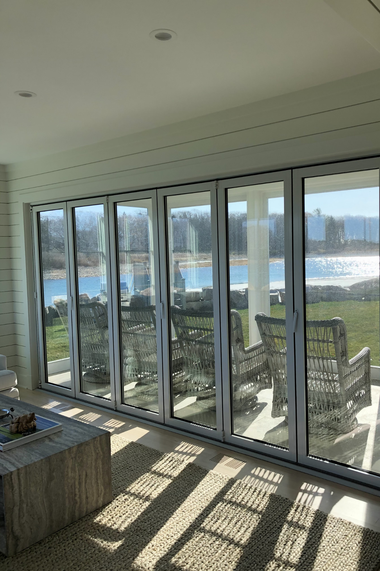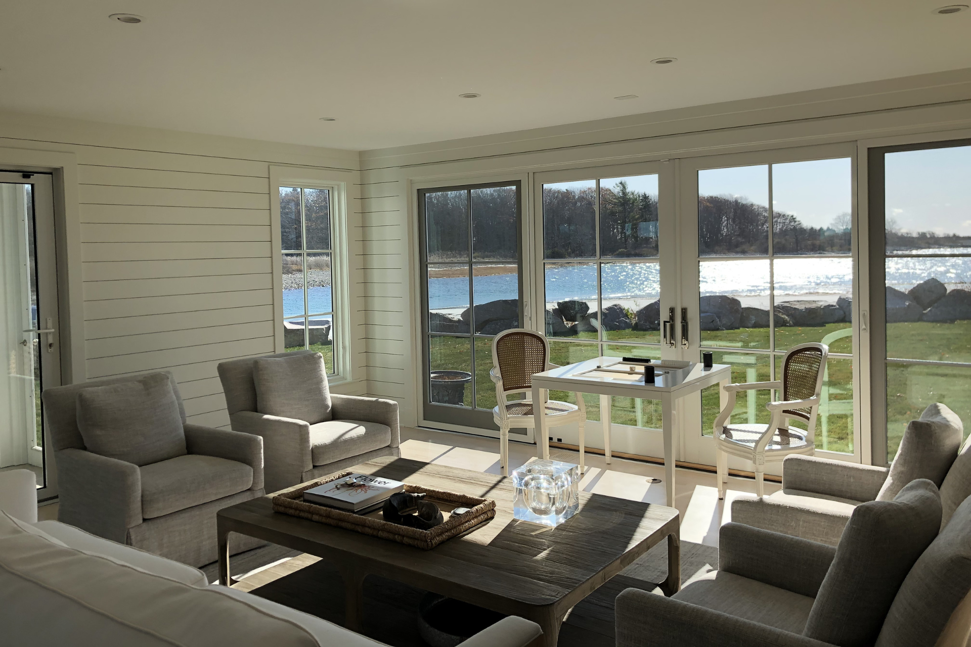 Paddy Creek Builders redid the facade of this beautiful beach and riverfront home, adding new windows and french doors, SBC cedar siding, PVC trim, nana walls, slate roof, kitchen, and bathroom remodel to complete this project.